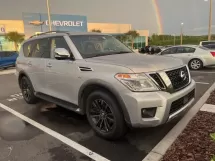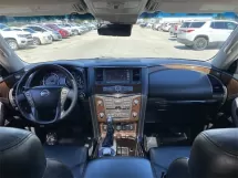 Power Windows, Remote Keyless Entry, Power Steering, Spoiler, Tachometer, Occupant sensing airbag, Outside temperature display, Overhead airbag, Panic alarm, Passenger door bin, Passenger vanity mirror, Power door mirrors, Radio data system, Rear seat center armrest, Rear window defroster, Rear window wiper, Security system, Speed-sensing steering, Split folding rear seat, Steering wheel mounted audio controls, Telescoping steering wheel, Tilt steering wheel, Traction control, Trip computer, Variably intermittent wipers, Overhead console, Power driver seat, Rear anti-roll bar, Rear reading lights, Speed control, Power passenger seat, Roof rack: rails only, Voltmeter, Navigation System, Memory seat, Rear air conditioning, Rain sensing wipers, Turn signal indicator mirrors, Ventilated front seats, Power Liftgate, Steering wheel memory, Power moonroof, Speed-Sensitive Wipers, Reclining 3rd row seat, Low tire pressure warning, Front reading lights, Fully automatic headlights, Illuminated entry, Heated door mirrors, Leather Shift Knob, Front fog lights, Heated front seats, Heated Steering Wheel, Lane Departure Warning System, Front dual zone A/C, Heated rear seats, Leather-Appointed Seat Trim, Garage door transmitter: HomeLink, Headphones, AIR Conditioning, Electronic Stability Control, Front Bucket Seats, ABS brakes, Alloy wheels, Brake assist, Bumpers: body-color, Delay-off headlights, Driver door bin, Driver vanity mirror, Dual front impact airbags, Dual front side impact airbags, Front anti-roll bar, 4-Wheel Disc Brakes, Front Center Armrest, Four wheel independent suspension, AM/FM radio: SiriusXM, 3rd row seats: split-bench, Automatic temperature control, Anti-whiplash front head restraints, Auto-dimming door mirrors, Auto-dimming Rear-View mirror, CD player, Auto-leveling suspension, Auto tilt-away steering wheel, Activation Disclaimer, A/V remote, Entertainment system, 13 Speakers, Illuminated Kick Plates, 2.937 Axle Ratio, Emergency communication system: NissanConnect Services, Roof Rail Cross Bars, Wheels: 20'' Machine-Faced Chrome w/Tinted CC, Heated & Cooled Front Bucket Seats w/Driver Memory, Radio: Bose AM/FM/SXM/CD/MP3/HD Radio, Rear seats: split-bench, Captain Seat Package, Carpeted Floor Mats w/ Captain Seat Package, Second Row Captain's Chairs, Second Row Center Console w/ Padded Armrest
