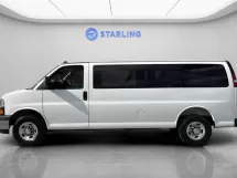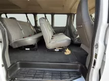 Power Windows, Remote Keyless Entry, Power Steering, Tachometer, Occupant sensing airbag, Overhead airbag, Panic alarm, Passenger door bin, Passenger vanity mirror, Power door mirrors, Security system, Tilt steering wheel, Traction control, Trip computer, Variably intermittent wipers, Rear reading lights, Speed control, Rear Park Assist, Preferred Equipment Group 1LT, Voltmeter, Side Blind Zone Alert, Rear air conditioning, Passenger cancellable airbag, Passenger seat mounted armrest, Theft Alarm Notification, Reclining Front Bucket Seats w/Inboard Armrests, Wheel Trim w/Chrome Center Caps, Low tire pressure warning, Front reading lights, Front wheel independent suspension, Fully automatic headlights, Illuminated entry, Heated door mirrors, Lane Departure Warning System, Full-Floor Color-Keyed Carpeting, Chrome Grille, AIR Conditioning, Electronic Stability Control, Front Bucket Seats, ABS brakes, AM/FM radio, Delay-off headlights, Driver door bin, Driver vanity mirror, Dual front impact airbags, Dual front side impact airbags, Front anti-roll bar, Compass, Driver's Seat Mounted Armrest, 4-Wheel Disc Brakes, 3.42 Rear Axle Ratio, 16'' x 6.5'' Steel Wheels, AM/FM Stereo w/MP3 Player, 2 Speakers, Forward Collision Alert, Bumpers: chrome, 3rd row seats: bench, Custom Cloth Seat Trim, Chrome Appearance Package, Front & Rear Chrome Bumpers w/Step-Pad, Deluxe Console w/Swing Out Storage Bin, 12-Passenger Seating (2-3-3-4 Seating Config), 15-Passenger Seating (2-3-3-3-4 Seating Config), 4th-Row Bench Seat, Sliding Passenger-Side Door, Keyless Entry Control Module (LPO), Deleted OnStar Basics